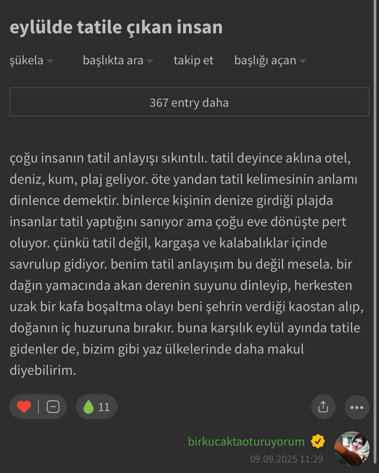 Tatil konusunda bana göre en doğruyu yazan kişi budur. Yıllardır ben de böyle düşünüyorum. Tatil dediğin dinlenmedir, başka bir şey değil. O gün evde durabiliyorsan tatildir işte. En basit ayrım budur.