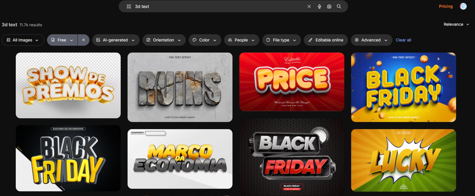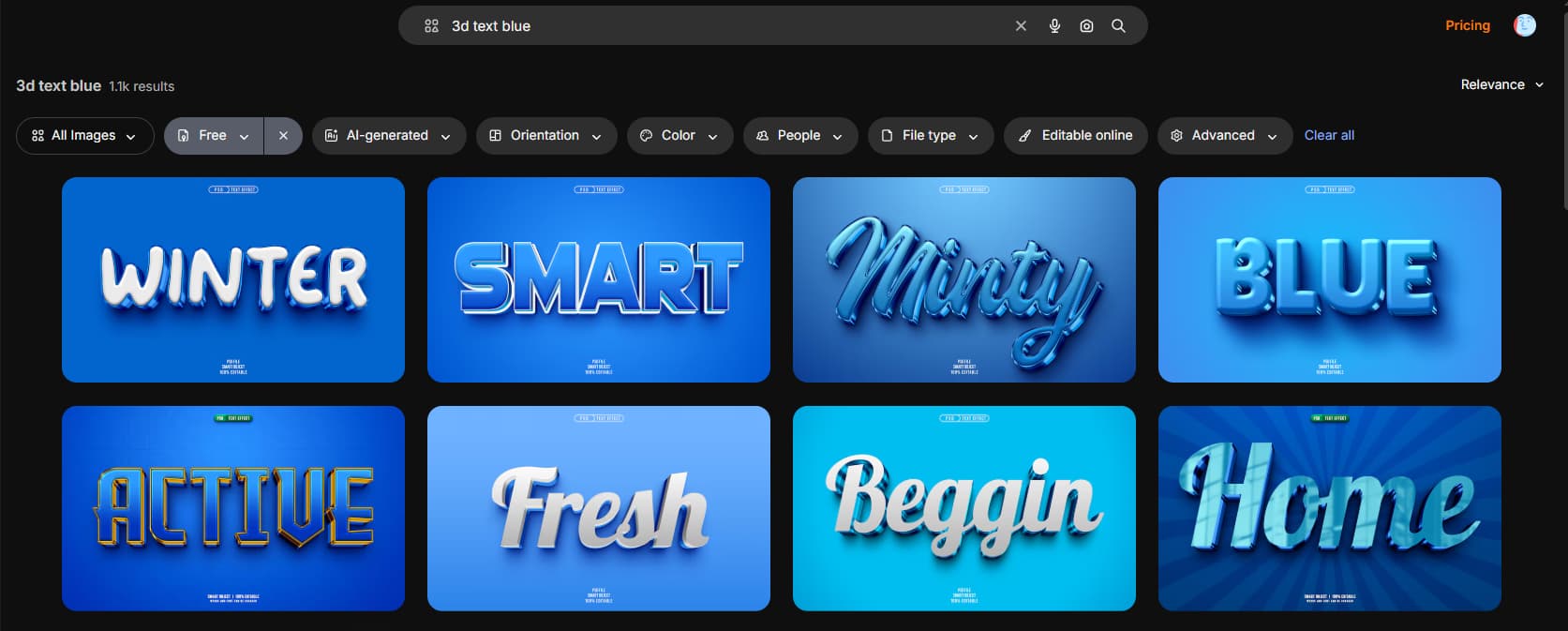 - Arama kutusuna “3d text” yazın. İsterseniz renk de yazabilirsiniz.