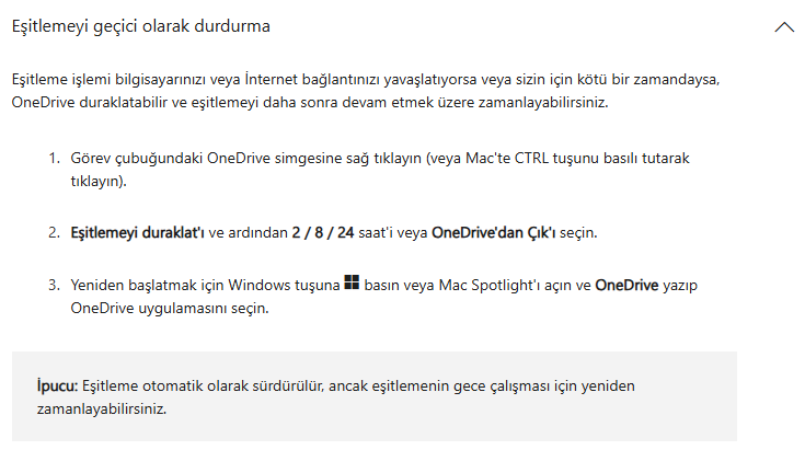 OneDrive eşitlemesini tamamen durdurabilirsiniz.