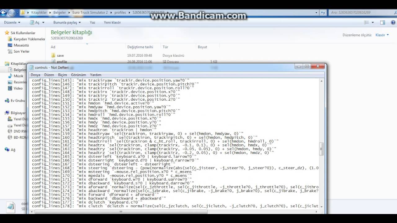 Sesli anlatımdaki videoda(1.video)3:03. dakikada anlatılan ‘‘gear 1,gear 2…gear 7’‘ye kadar olan ve tırnak içine alınmış bütün ‘‘joy’‘ları silin,’‘gearsel1tgl’’(aktarma) kısmına tuş atadıktan sonra’‘gearsel2tgl’’(takviye) kısmına da tuş atayın(videoda olduğu gibi ‘‘lshift’’ ve '‘lctrl’'tuşları atanabilir(hangi tuş olacağı tercihinize kalmış).