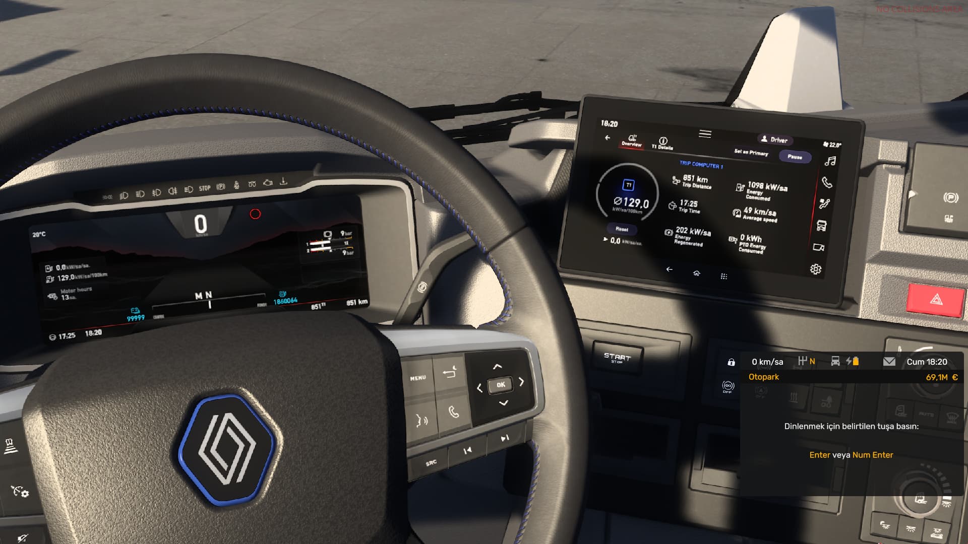 Renault Trucks E- Tech T’nin sol tarafında UV mapping hatası bulunmaktadır. Ayrıca sol yan etekliğe herhangi bir definiton olmamasına rağmen boya işini basıyor.