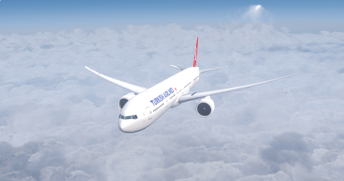Bugünkü rotamız, İstanbul - J. F. Kennedy New York. Kalkışta rüzgar belirsiz estiği için pist seçiminde başka bir 777 ile çakıştık. Böyle bir görüntü ortaya çıktı.