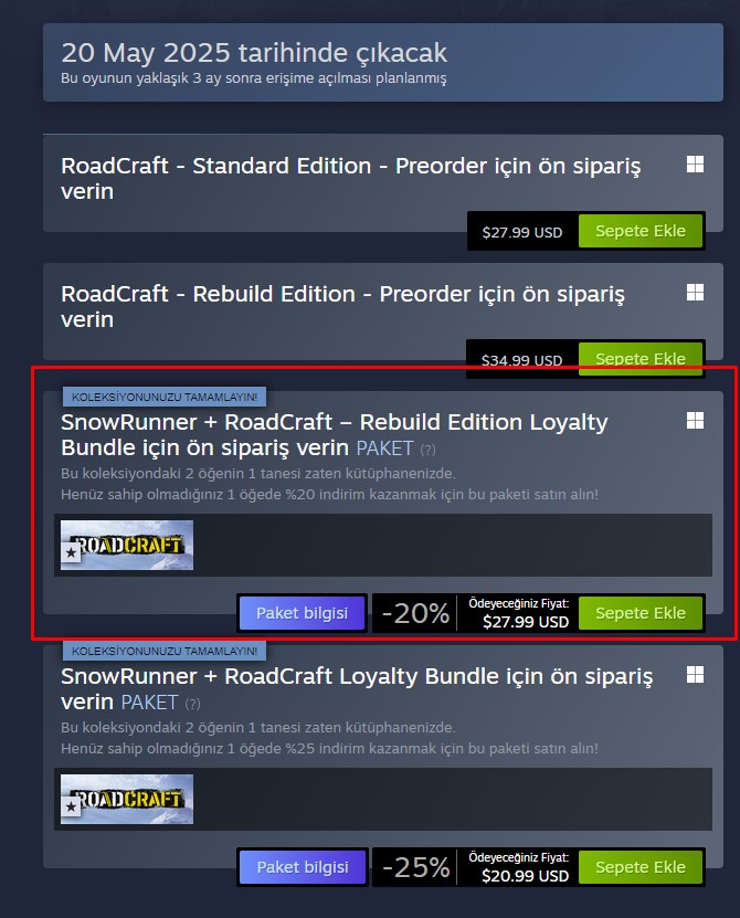 snowrunner varsa ek paketlisi 1000tl, epic’de 1900, doların durumunu da düşünürsek imkanı olan sipariş versin.